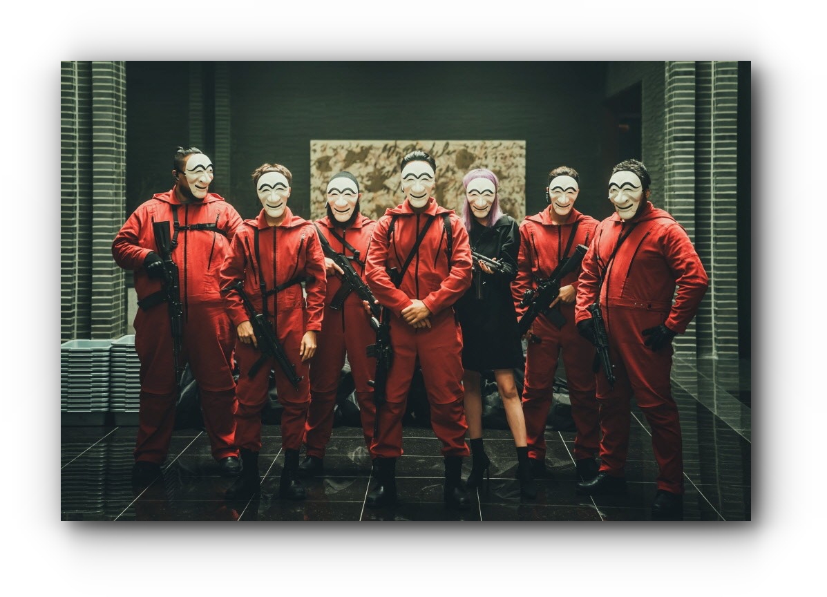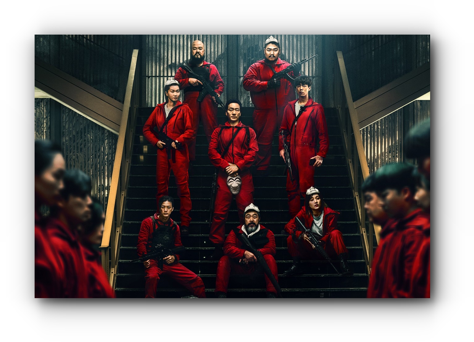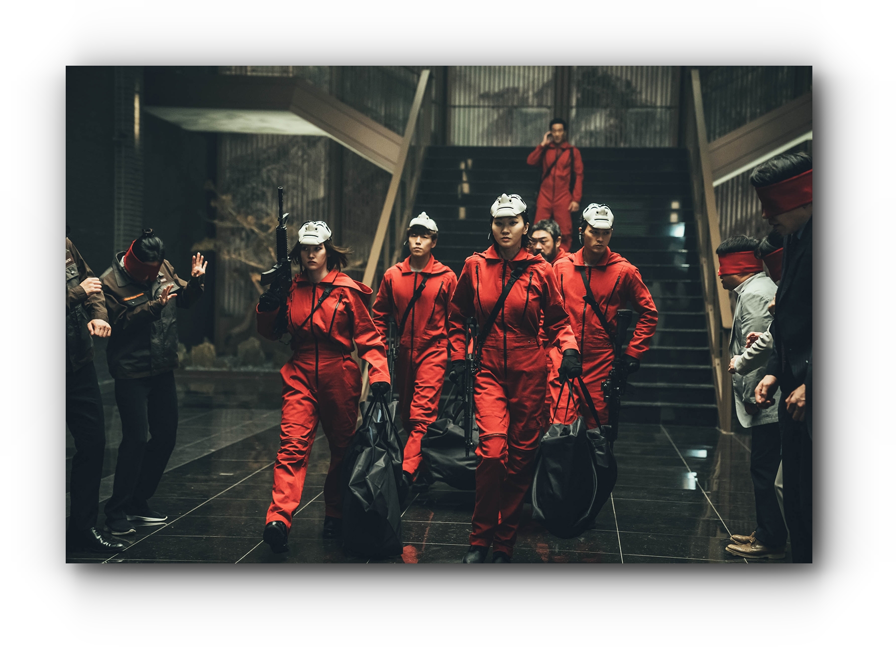 넷플릭스 현지화 최초이자 대성공 작품인 <종이의 집>은, 교수가 지휘하는 7명의 범죄자가 조폐국을 급습하면서 발생하는 이야기를 다루고 있습니다. 이 작품이 성공한 이유는 획기적인 아이디어와 트릭으로 "케이퍼 무비(강탈 영화)"의 매력을 살렸기 때문입니다. 살바도르 달리 가면을 쓰고 빨간 점프 슈트를 입은 강도들의 형상도 성공의 요소죠.