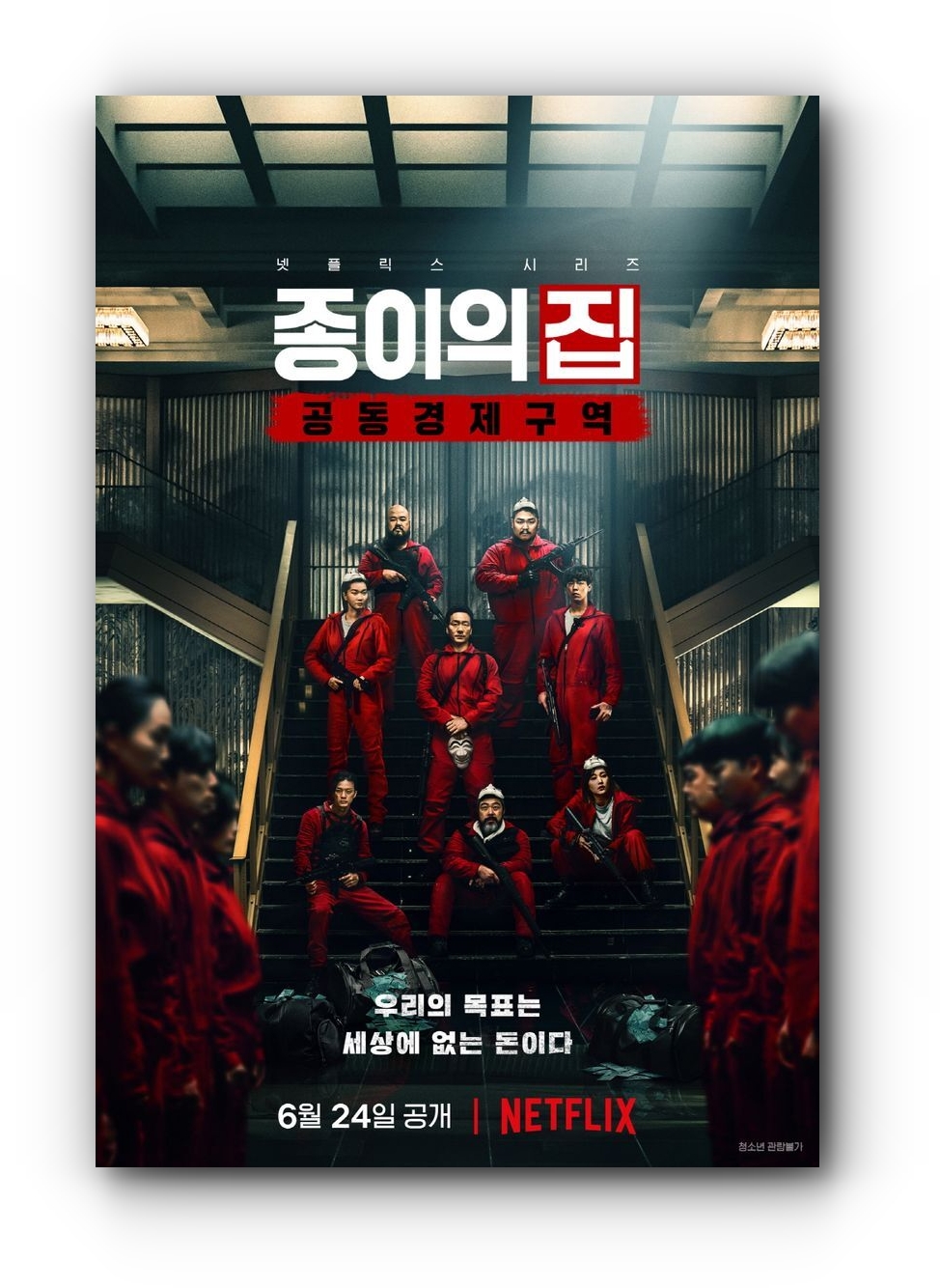 넷플릭스에서 방영된 스페인 드라마 <종이의 집>의 리메이크 작품으로 2022년에 공개한 한국의 오리지널 드라마 입니다. 이 드라마의 시간적 배경은 2026년 9월 초로, 공간적 배경은 공동경제구영과 한반도통일조폐국, 그리고 경기도 파주시 등이 등장하게 됩니다.